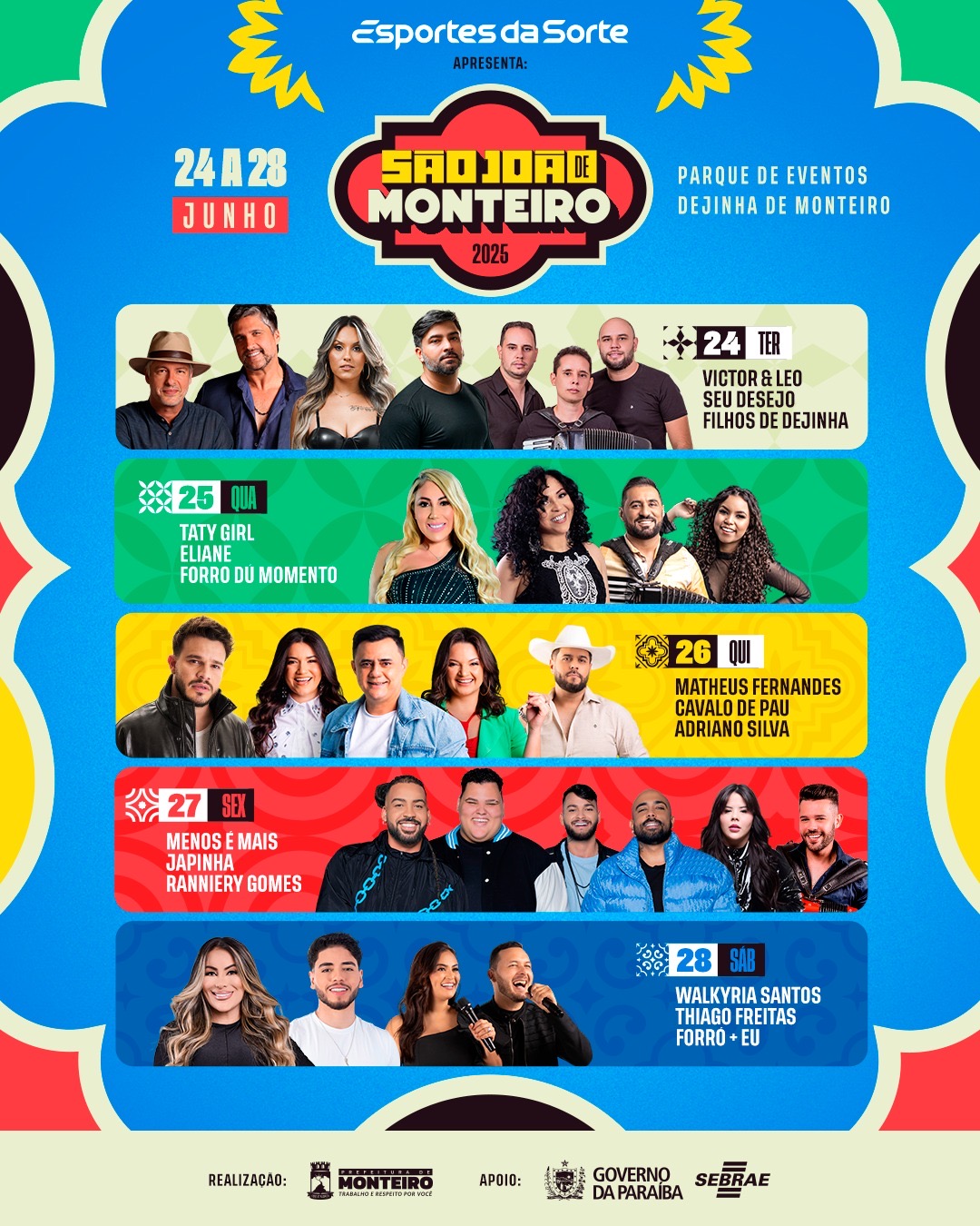 Monteiro divulga programação oficial do São João 2025; veja atrações confirmadas