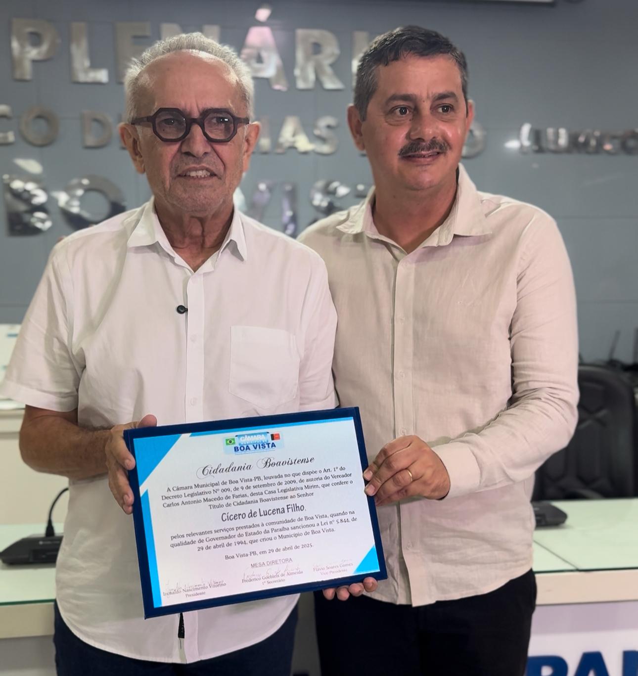 Prefeito de Boa Vista prestigia entrega do Título de Cidadania ao ex-senador Cícero Lucena