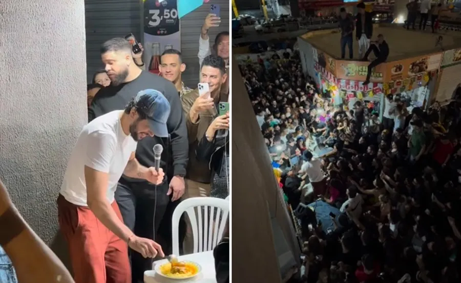 Nattan na Feira da Prata: cantor toma café da manhã e canta no mercado público, após show no PP