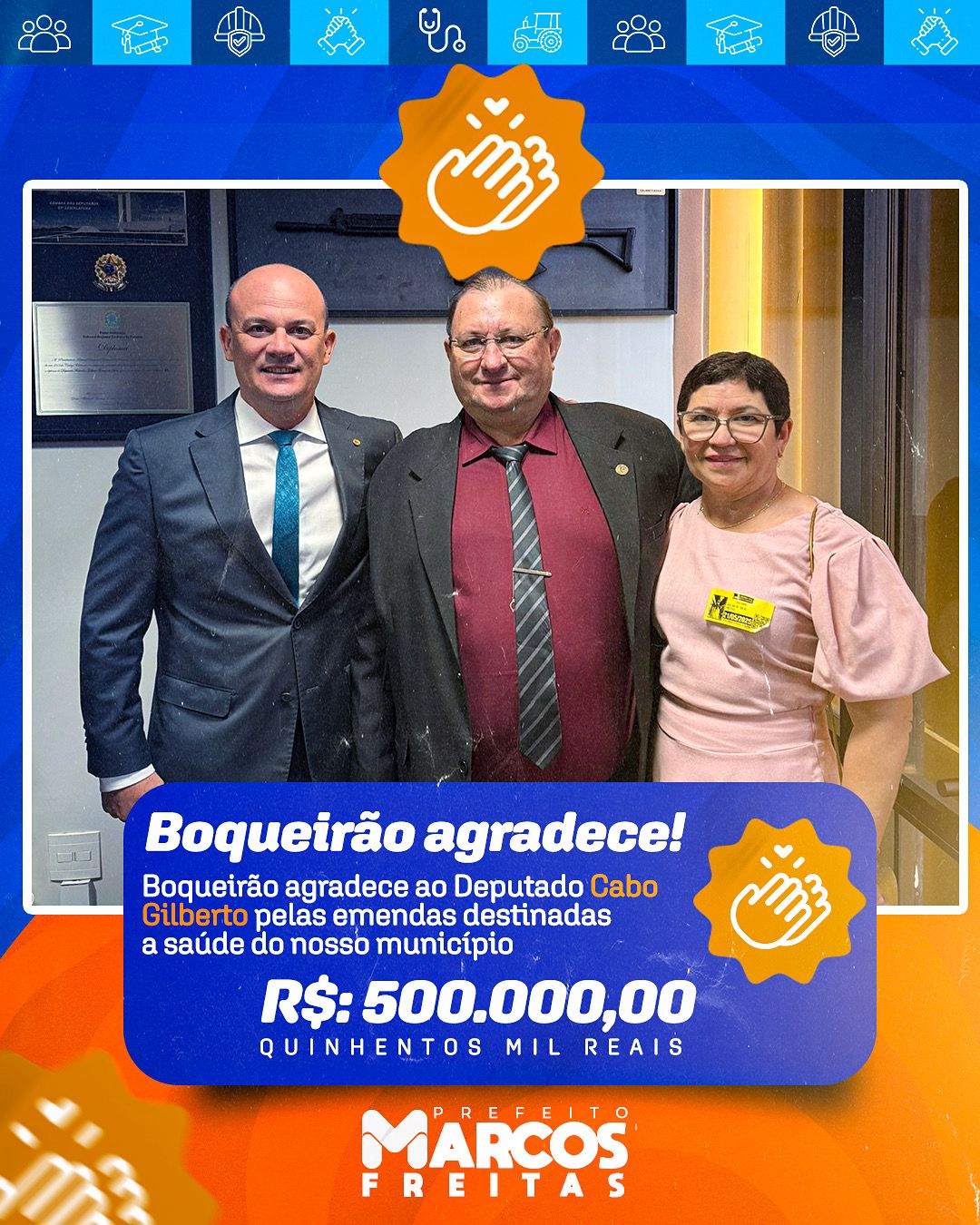 Prefeito Marcos Freitas agradece ao deputado Cabo Gilberto por emenda de R$ 500 mil destinada à saúde de Boqueirão
