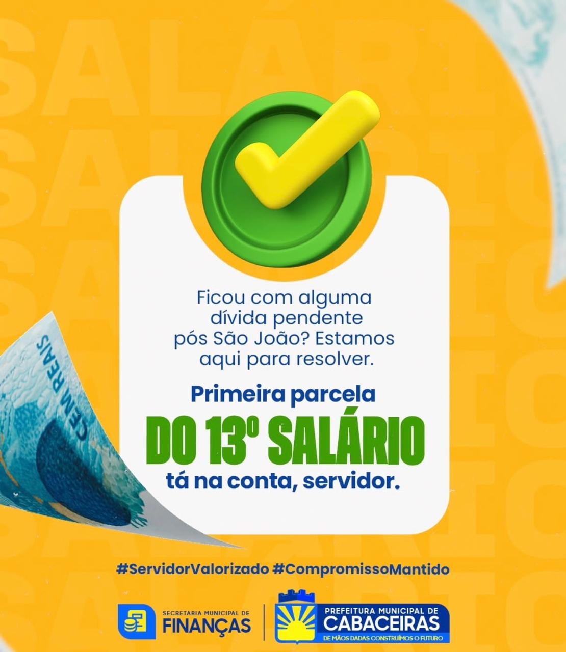 O prefeito de Cabaceiras, Ricardo Aires, anunciou nesta sexta-feira (11) o pagamento da primeira parcela do 13º salário dos servidores municipais. O valor já foi creditado nas contas dos funcionários, garantindo mais tranquilidade financeira às famílias e impulsionando a economia local neste período pós-festejos juninos. A iniciativa reafirma o compromisso da gestão com a valorização […]
