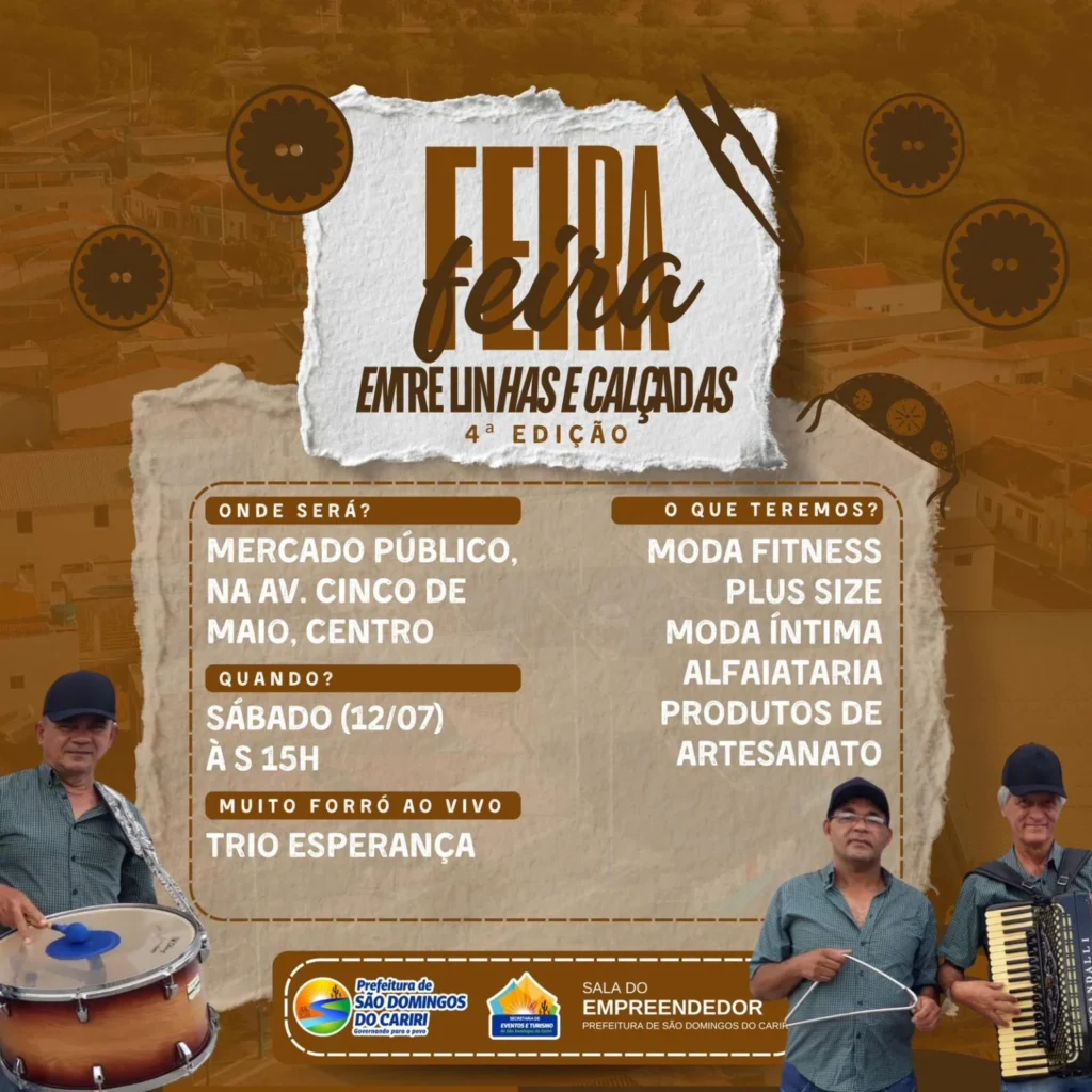 O município de São Domingos do Cariri se prepara para mais uma grande celebração da cultura, arte e empreendedorismo local com a realização da 4ª edição da Feira “Entre Linhas e Calçadas”, que acontecerá no próximo sábado, 12 de junho, a partir das 15h no mercado publico da cidade. A feira, que já se consolidou […]