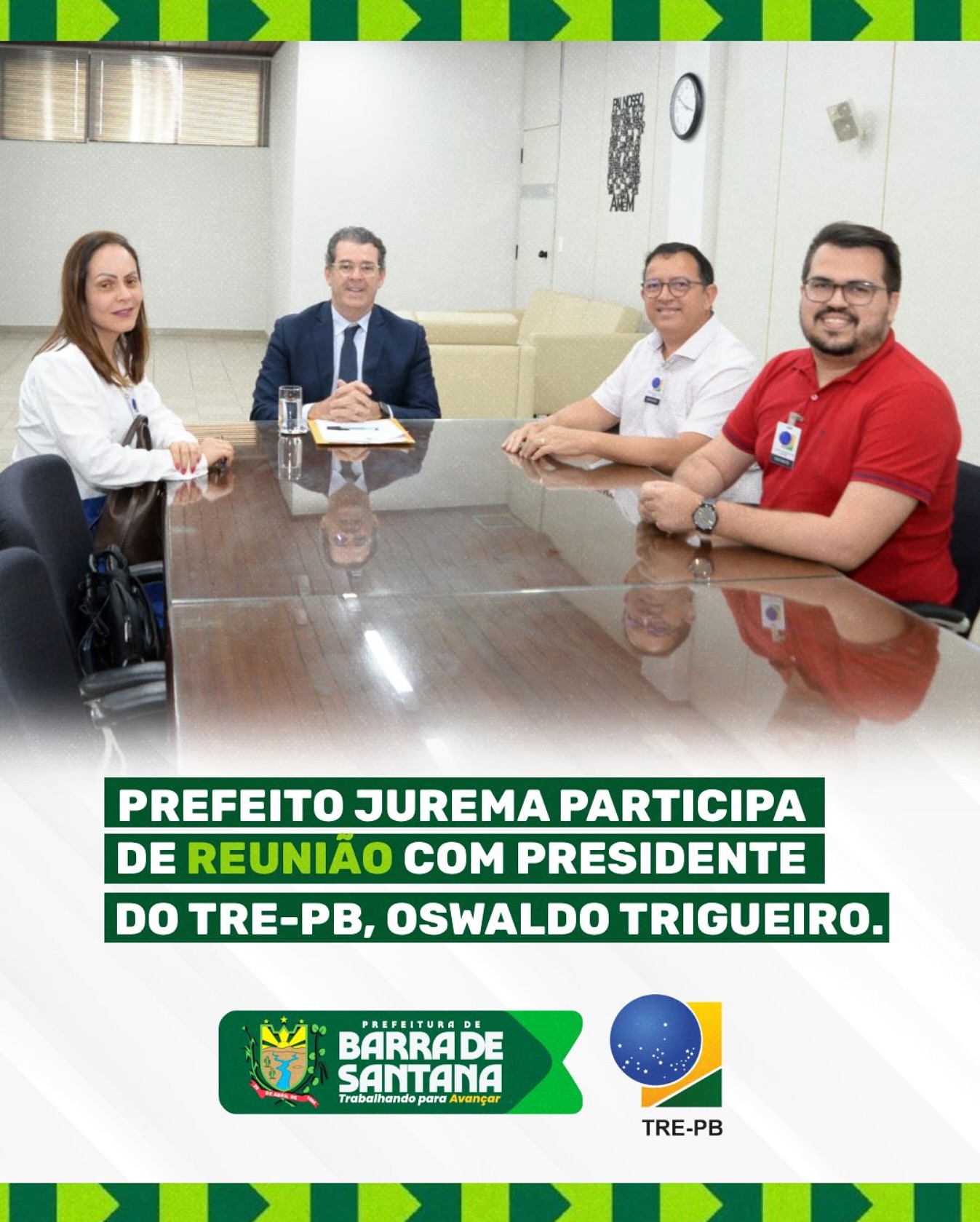 O prefeito de Barra de Santana, Jurema, participou nesta sexta-feira (1º) de uma reunião institucional com o presidente do Tribunal Regional Eleitoral da Paraíba (TRE-PB), desembargador Oswaldo Trigueiro do Valle Filho. O encontro ocorreu na sede do TRE, em João Pessoa, e contou também com a presença da advogada Flávia de Paiva e do secretário […]