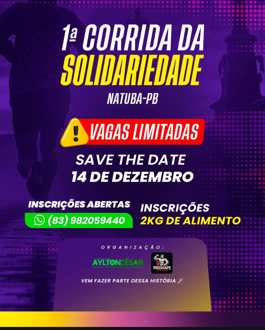A cidade de Natuba-PB está na contagem regressiva para a 1ª Corrida da Solidariedade, que acontece no dia 14 de dezembro, reunindo esporte, saúde e compromisso social. O evento, que promete marcar o calendário esportivo do município, já demonstra sua força antes mesmo da largada: mais de 700 quilos de alimentos foram arrecadados, e a […]