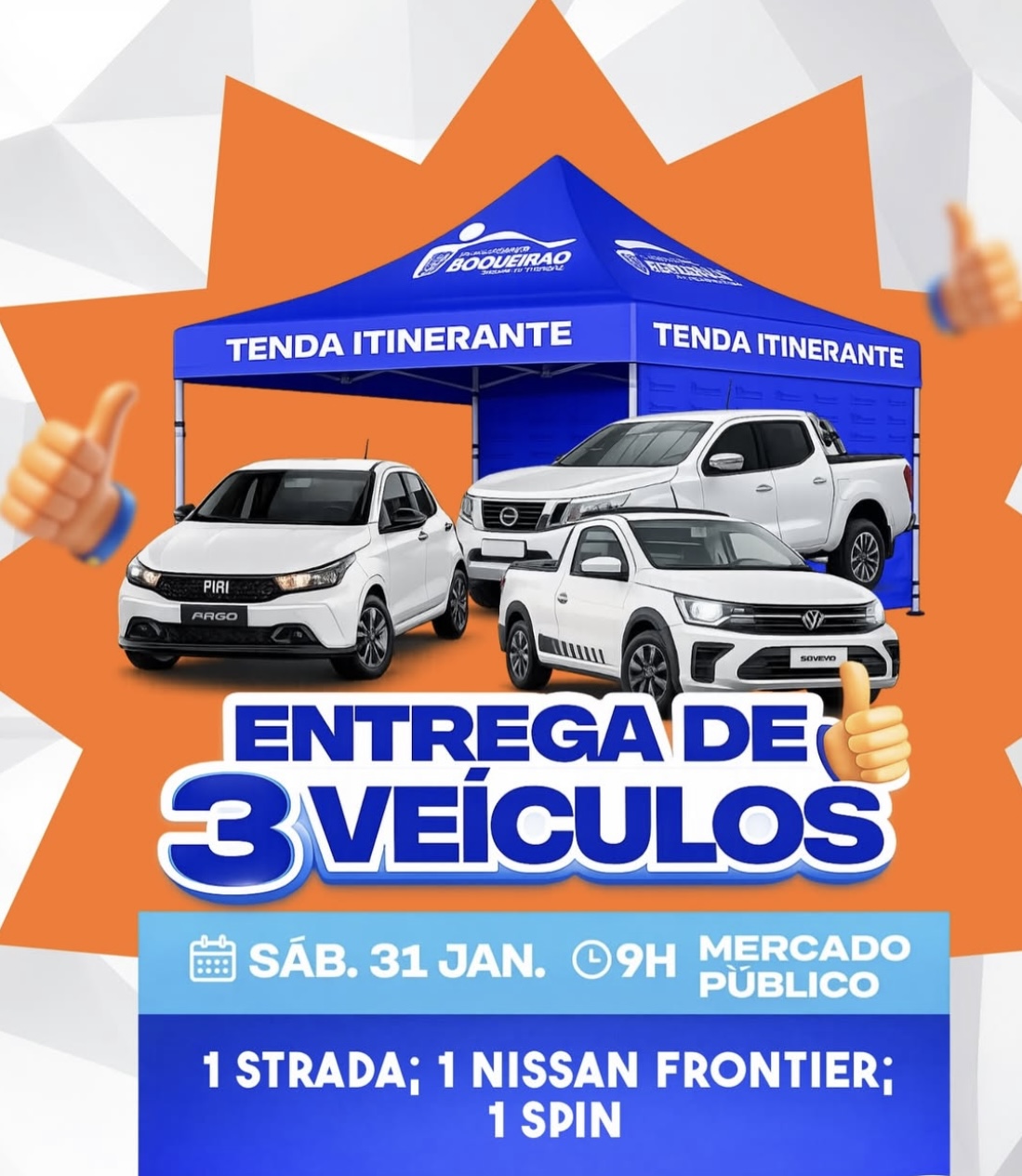 A Prefeitura de Boqueirão segue investindo na melhoria da estrutura administrativa e na qualidade dos serviços públicos. No próximo sábado, 31 de janeiro, às 9h, no Mercado Público, será realizada a entrega oficial de três novos veículos que irão fortalecer as ações do município. Serão incorporados à frota municipal uma Fiat Strada, uma Nissan Frontier […]