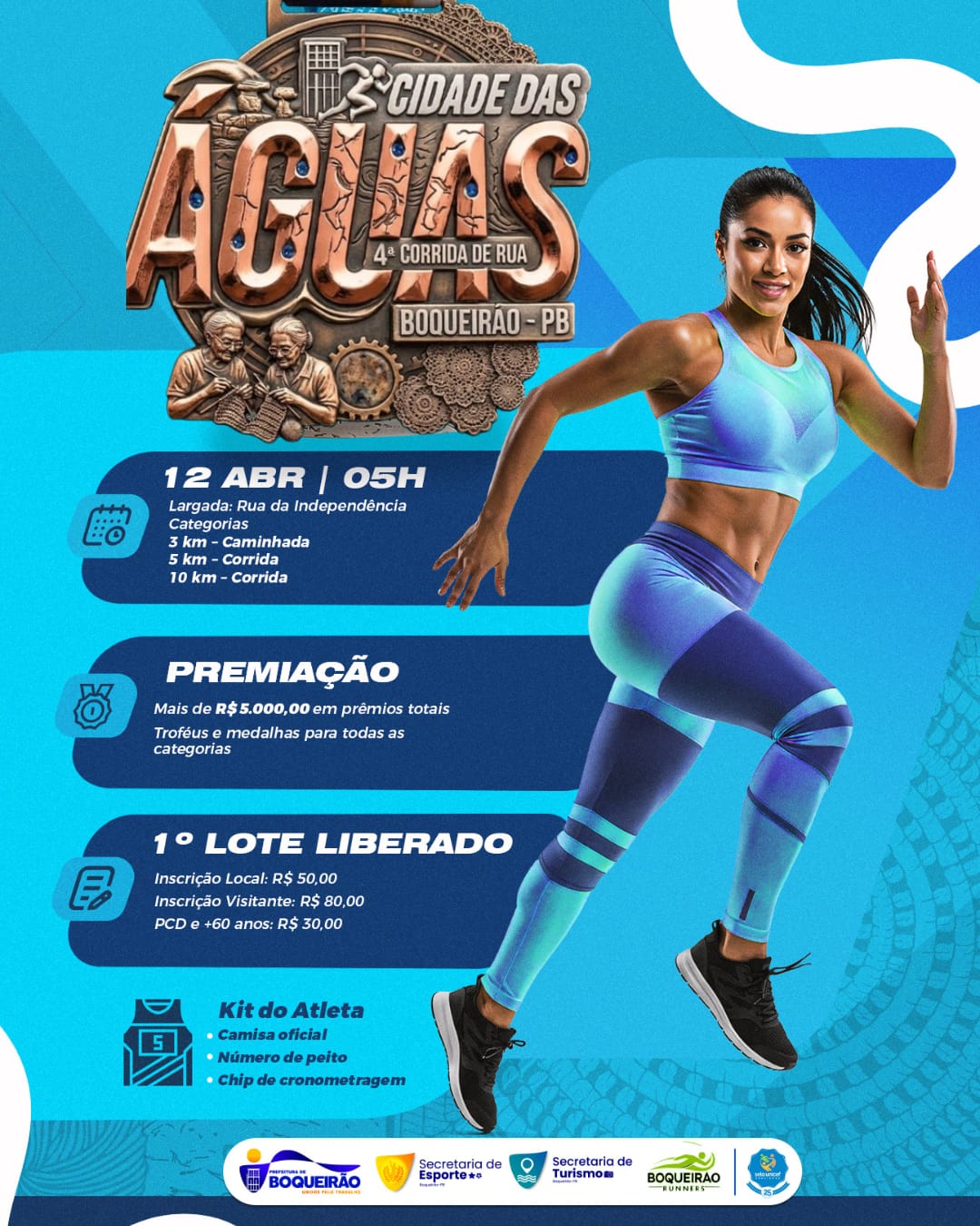 A 4ª Corrida Cidade das Águas é uma realização da Prefeitura Municipal de Boqueirão, com apoio da Secretaria de Esportes, da Secretaria de Turismo, da equipe Boqueirão Runners e do professor Hugo Silva.