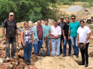 Vídeo: Prefeito Tiago Castro e comitiva de vereadores visitam as obras de construção da passagem molhada do Rio da Tapera, em Cabaceiras