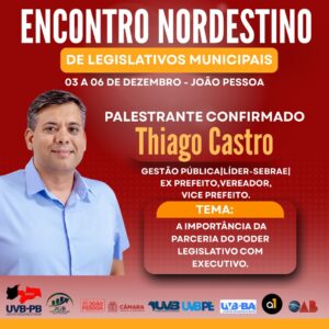 Tiago Castro é confirmado como palestrante no Encontro Nordestino de Legislativos Municipais em João Pessoa