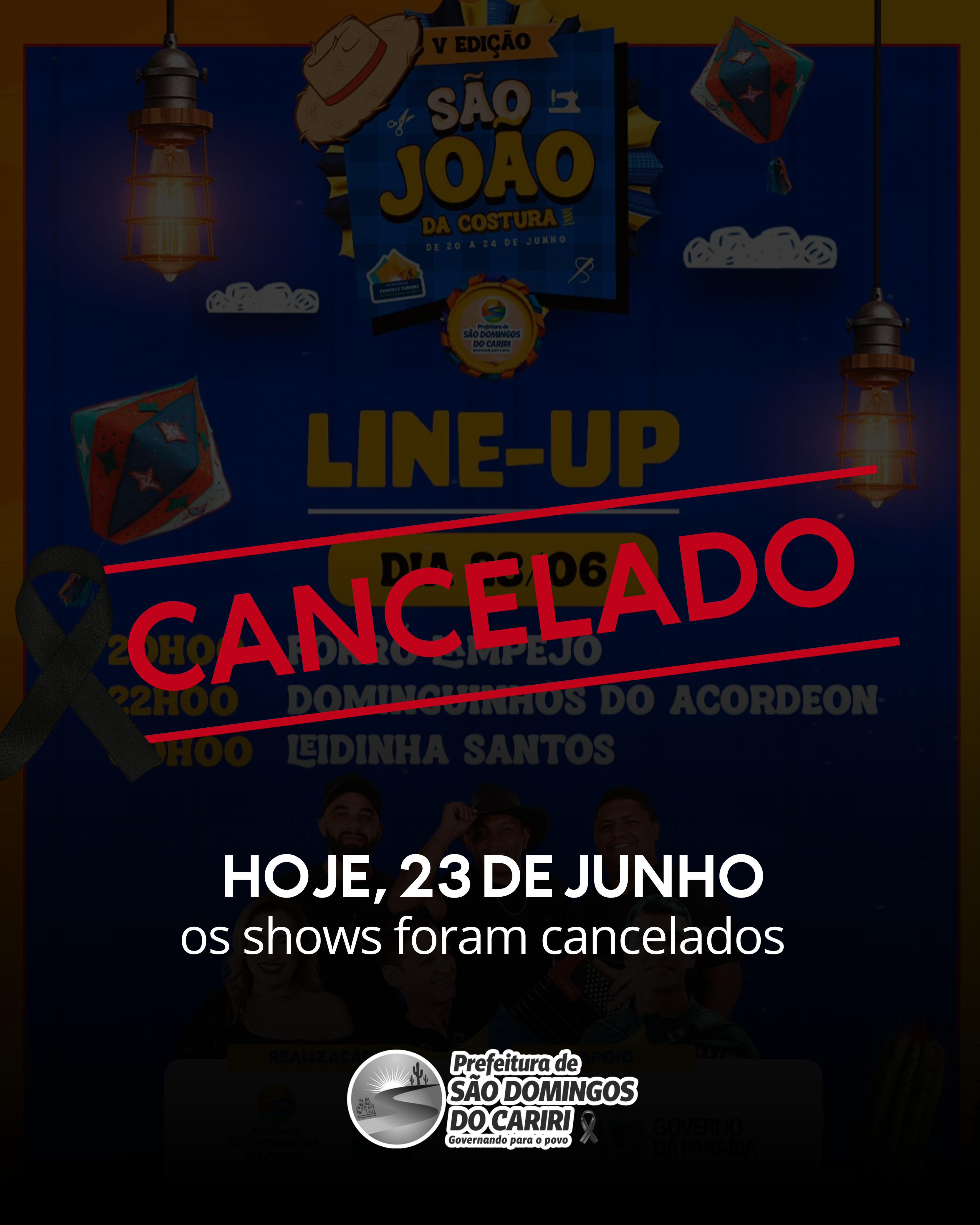 Em sinal de respeito e luto, a Prefeitura Municipal cancelou as festividades juninas que estavam previstas para esta segunda-feira. A programação deverá ser retomada normalmente a partir desta terça-feira (24).