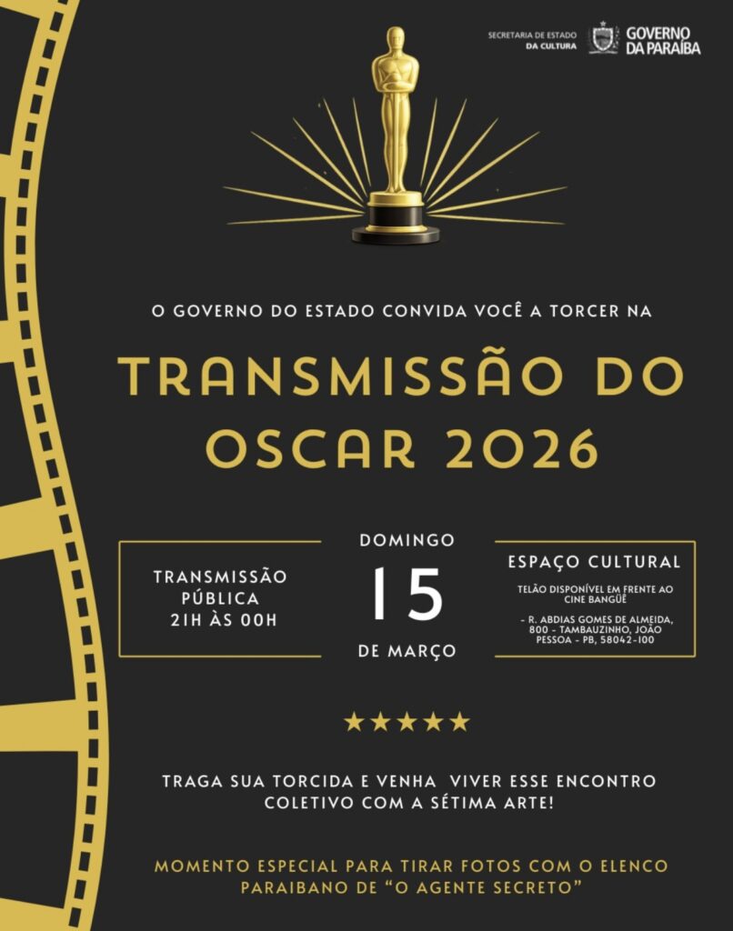 O Brasil vive a expectativa para o Oscar 2026, que acontece neste domingo (15) e pode render até quatro estatuetas para o filme “O Agente Secreto“. Na Paraíba, parte do elenco do longa vai acompanhar a cerimônia em um evento aberto ao público, em João Pessoa.