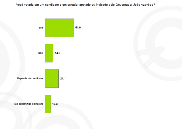 O levantamento também aponta que 14,6% não votariam em um candidato indicado pelo chefe do Executivo estadual, enquanto 24,1% disseram que a decisão depende do candidato. Outros 10,3% não souberam ou não ou não opinaram.