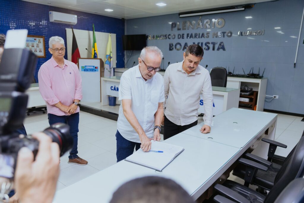 No aniversário de 31 anos de emancipação política do município de Boa Vista, o prefeito Fernando Aires participou da solenidade de entrega do Título de Cidadania boa-vistense ao ex-senador e atual prefeito de João Pessoa, Cícero Lucena. A cerimônia aconteceu terça-feira (29) à noite na Câmara Municipal e reuniu autoridades, lideranças políticas e representantes da sociedade civil.