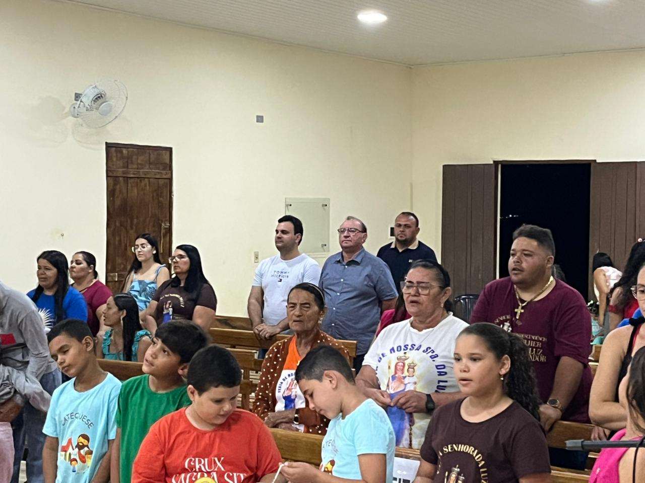 Durante a celebração, o gestor esteve acompanhado do presidente da Câmara Municipal, Fábio Rodrigues, e do secretário de Esportes, Joelson do Moite, reforçando o compromisso da gestão municipal com o fortalecimento das tradições religiosas e culturais do município.